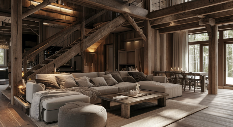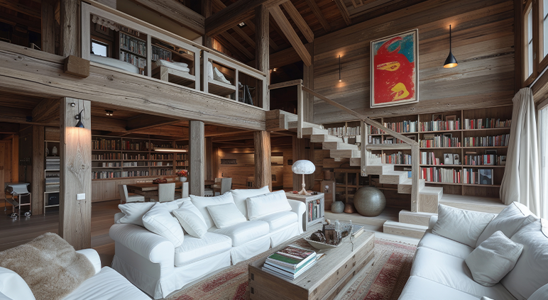 Loft de style scandinave avec espace ouvert et mobilier design