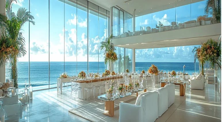 Imaginez un cadre océanique avec une vue imprenable sur le coucher du soleil. Une ambiance romantique et féérique parfaite pour mariages, dîners privés ou événements exclusifs. Offrez à vos convives un panorama naturel inoubliable, tout en savourant un service raffiné.